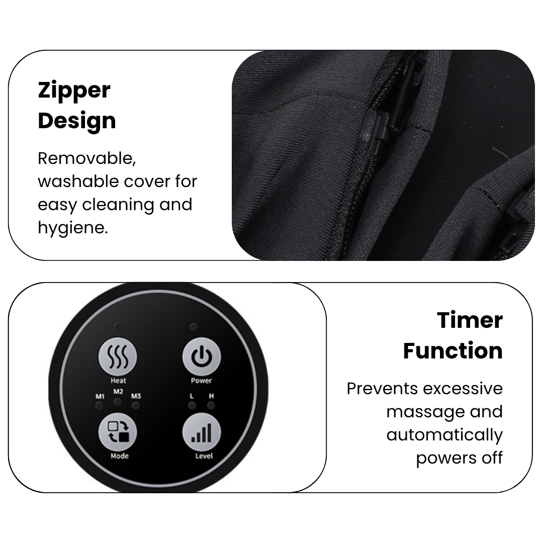 Washable covers keep things hygienic, while the auto-timer ensures worry-free, balanced massage sessions.
